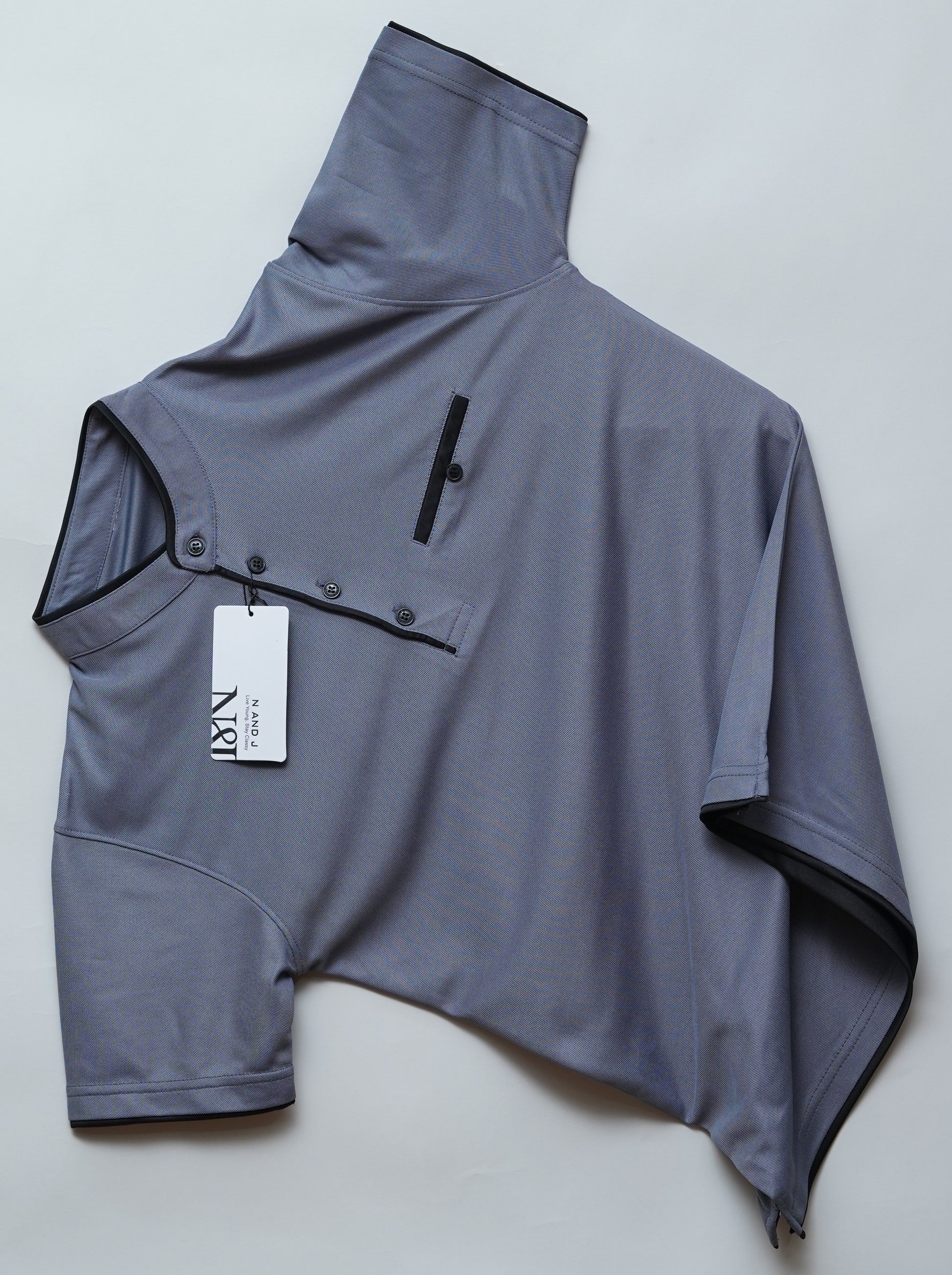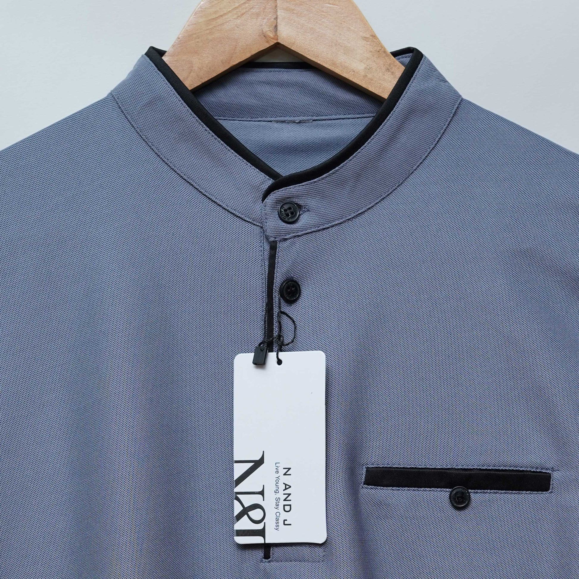 The Henley neckline is accented with contrast piping for a refined edge, while the angled chest pocketcut introduces a bold, design-forward detail that sets this polo apart. Whether you’re headed to a smart casual outing or just keeping it laid-back, this t-shirt effortlessly blends versatility with statement style.